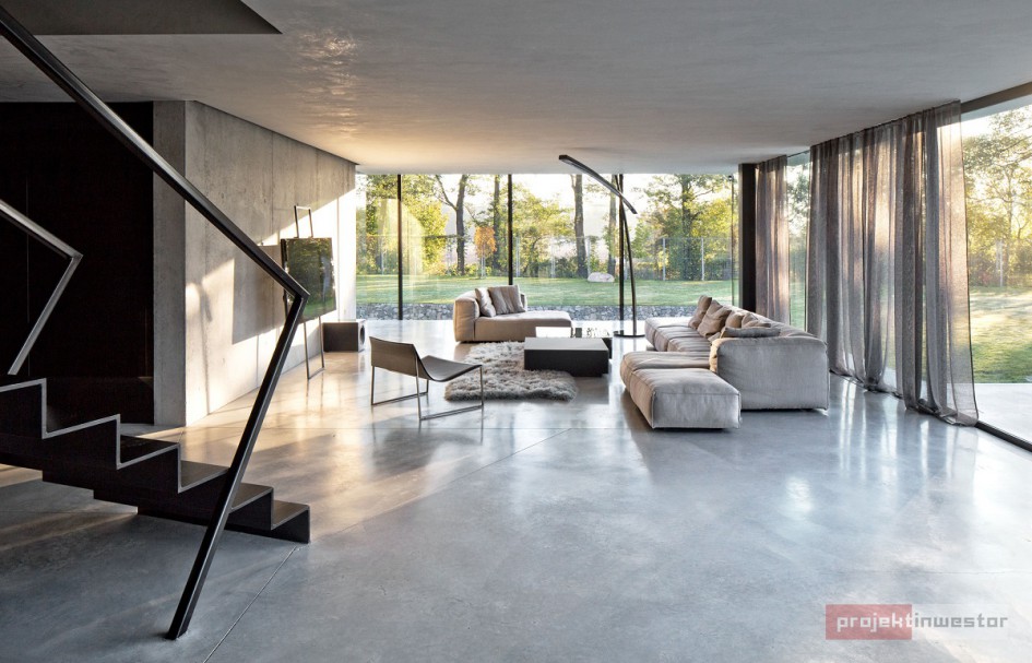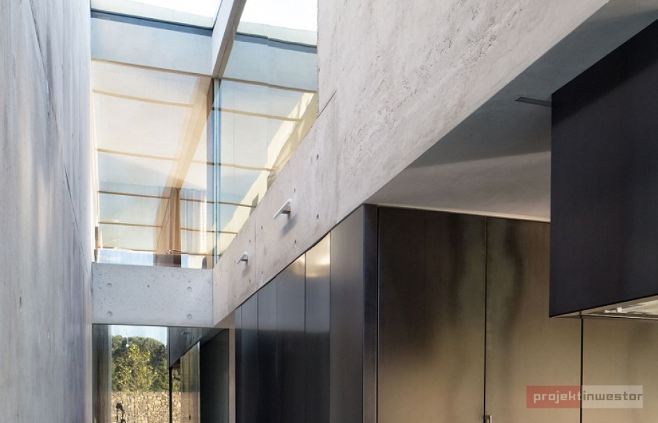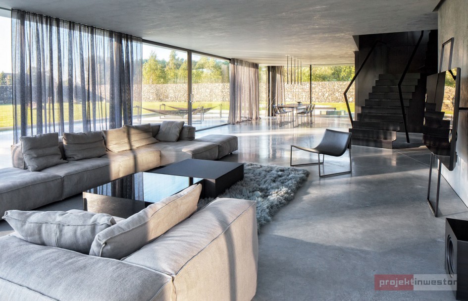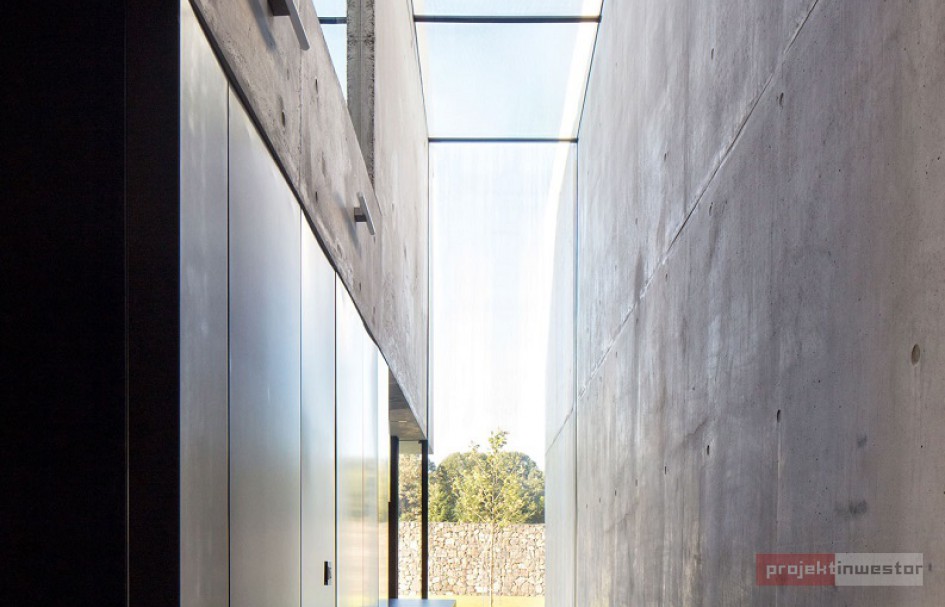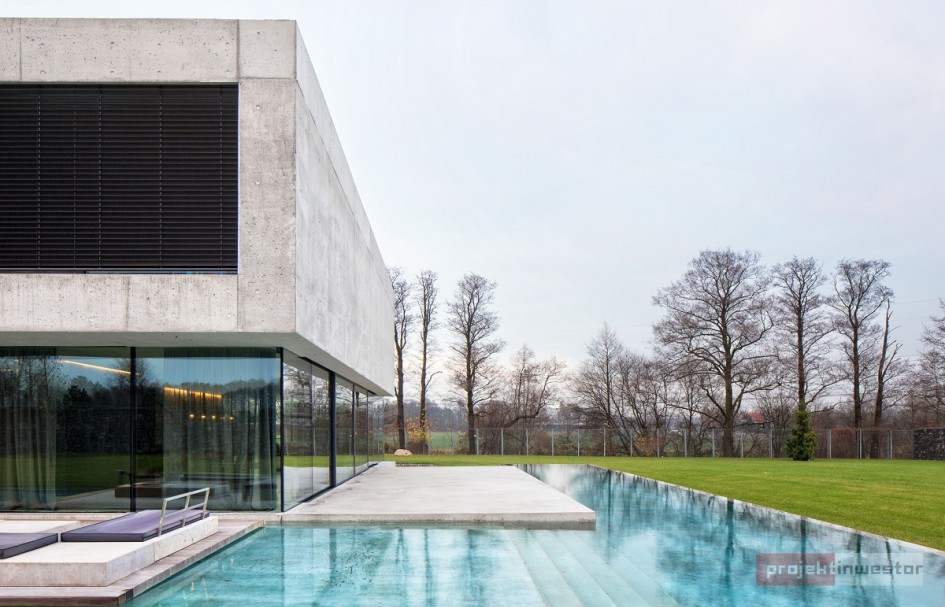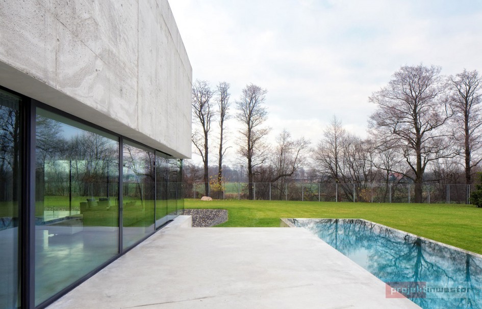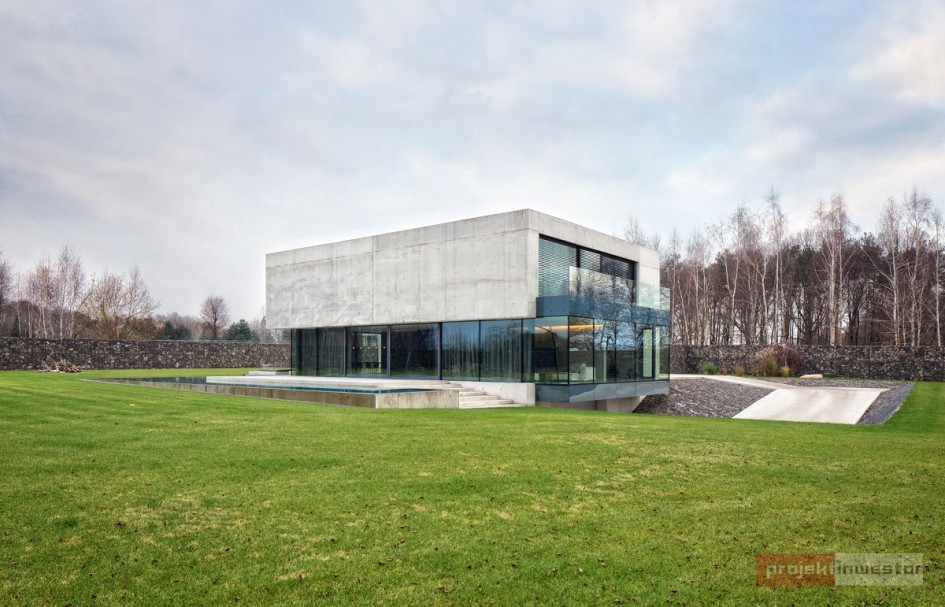 Dom pod Opolem miał być przede wszystkim oazą prywatności dla mieszkańców, stąd wysoki, betonowy mur, za którym kryje się właściwie wszystko, co związane z tym projektem. Dzięki temu obiekt jest odcięty od zewnętrznego świata, a życie wewnątrz toczy się bez jego udziału.