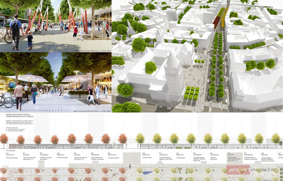 - Skupiliśmy się na przywróceniu w mieście utraconej ciągłości kompozycji urbanistycznej umożliwiającej wyzwolenie swobodnego ruchu pieszego, ze zmiennością nastrojów oraz doznań wizualnych – wyjaśnia Piotr Z. Barełkowski, prezes pracowni Studio ADS. – Kompozycja urbanistyczna opiera się na wytworzeniu dwóch głównych alei miejskich na osi wschód-zachód, podkreślonych wprowadzanymi szpalerami wysokich drzew. Chodzi o ulicę Św. Marcin – dawny wjazd do miasta od strony dworca kolejowego, a dziś połączenie Kaponiery i zachodniej części Poznania ze śródmieściem oraz ulicę 27 Grudnia, łącząca – poprzez Most Teatralny – Stare Miasto z północną częścią miasta oraz Jeżycami. Kompozycję uzupełnia poprzeczny północno-południowy układ ulic, o węższym przekroju i kształtowanych indywidualnie atmosferach.