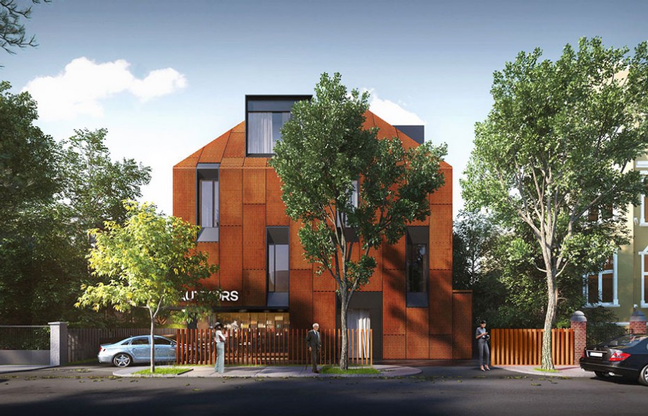 Wyjątkowa będzie elewacja koloru ceglanego, która niemal w całości pokryta zostanie siatką wykonaną z cortenu. W części parteru pojawi się również fasada aluminiowa z wypełnieniem szklanym.