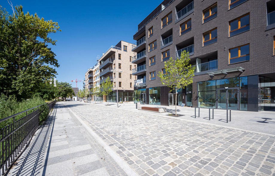 Projekt poza zabudową mieszkalną obejmował powstanie ogólnodostępnych przestrzeni publicznych, które przyczyniły się do rewitalizacji tego miejsca, w tym pieszej promenady - tzw. ulicy handlowej oraz nowego placu miejskiego od strony Mostu Pomorskiego. Część mieszkalna została usytuowana powyżej ulicy handlowej z wyodrębnionym patio i oddzielonymi wejściami do klatek schodowych, a także osobnymi parkingami zarówno dla osób odwiedzających lokale w pasażu, jak i mieszkańców.