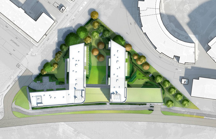 Dwuczęściowy apartamentowiec, o siedmiu kondygnacjach nadziemnych, powstał przy ul. Woronicza 80. Budynek składa się z dwóch brył, połączonych na wysokości parteru pasażem lokali usługowych i oferuje 149 mieszkań.