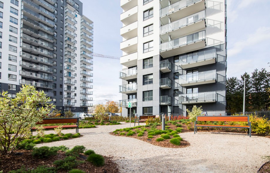 W pierwszym, który ukończony został w III kw. 2018 r. do użytku oddano dwa 17-piętrowe budynki z dwupoziomowymi garażami podziemnymi i ponad 300 mieszkań o pow. od 30 do 100 mkw. Drugi etap inwestycji, to kolejne pięć budynków o konstrukcji kaskadowej i wysokości od 3 do 17 pięter oraz 232 lokale, w tym 216 mieszkań oraz 16 lokali usługowych. Przekazanie lokali odbywało się w dwóch terminach: do 31.01.2020 r. oraz do 15.09.2020 r.