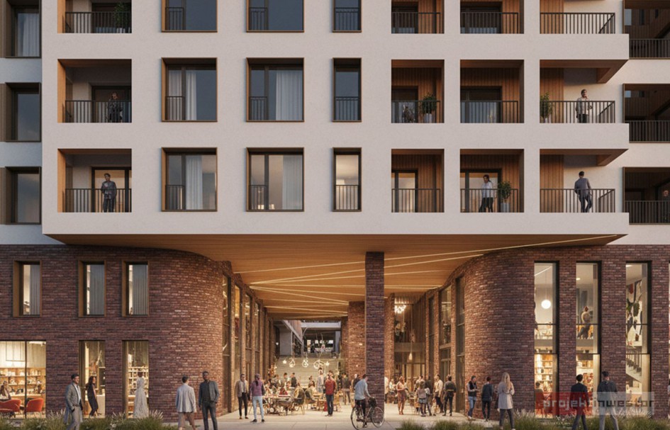 Koncepcja projektowa zakłada powstanie około 700 mieszkań o zróżnicowanych metrażach. Istotnym elementem przedsięwzięcia będzie rozbudowana funkcja usługowa – lokale handlowe i usługowe mają stanowić około 30 proc. powierzchni użytkowej przyziemia, a w części frontowej budynków zaplanowano je na dwóch poziomach. Przestrzenie pomiędzy bryłami zostaną zagospodarowane jako ogólnodostępne, zielone dziedzińce z elementami małej architektury.