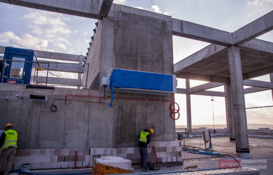 – W pierwszych dniach października rozpoczęliśmy prace instalacyjne na dachu technicznym. Obecnie trwa montaż konstrukcji stalowych, które będą stanowiły obudowę dla pomieszczeń technicznych. Pod koniec miesiąca planujemy dostarczenie w to miejsce głównych central wentylacyjnych – mówi Wojciech Adam, Kierownik Budowy z ramienia firmy STRABAG.