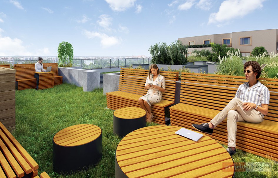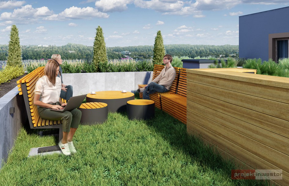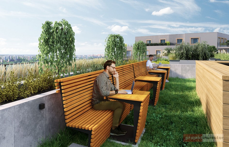 Na terenie Podgórza inwestycję o podwyższonym standardzie realizuje Echo Investment. Deweloper stawia budynek posiadający sto mieszkań, a na jego dachu zaplanowano ogólnodostępny taras, który będzie miał wydzieloną strefę coworkingową dla mieszkańców.