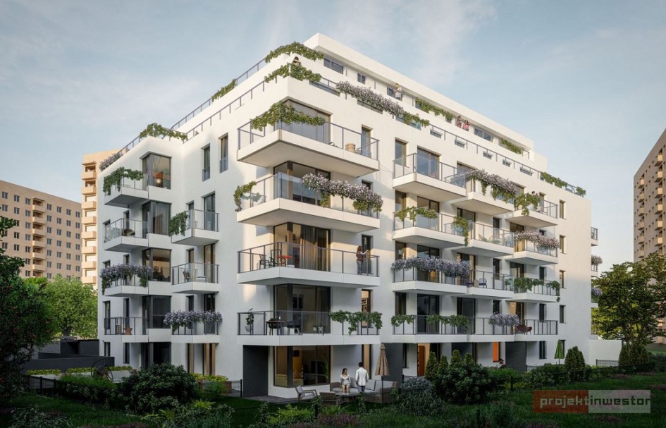 Do każdego z lokali przewidziano dodatkową przestrzeń zewnętrzną, czyli balkon lub taras, a w części mieszkań na najniższej kondygnacji zaprojektowano ogródki. Z kolei najwyższe piętra stanowią strefę dla najbardziej luksusowych, wielometrażowych apartamentów.