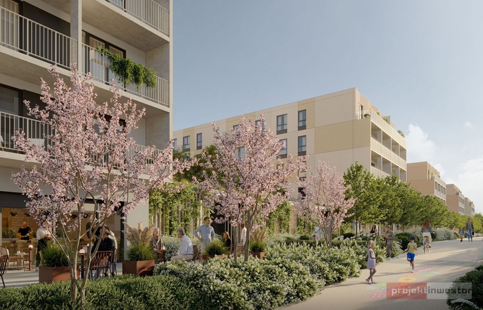 W budynku znajdą się mieszkania z balkonami oraz lokale parterowe z ogródkami. Centralną część osiedla zajmie dziedziniec ze szklarnią, strefą rekreacyjną i infrastrukturą rowerową. Obiekt powstanie w konstrukcji żelbetowej, z wentylacją mechaniczną i instalacjami przygotowanymi pod systemy automatyki mieszkaniowej.