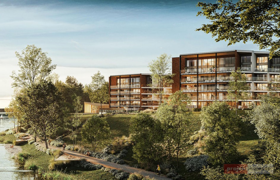 Każde mieszkanie posiada balkon, loggię lub taras oraz panoramiczne, trzyszybowe okna, które zapewniają widoki na zalew lub okoliczną zieleń. Na najwyższych piętrach znajdą się apartamenty dwupoziomowe z antresolami. Całość uzupełniają szklane balustrady.