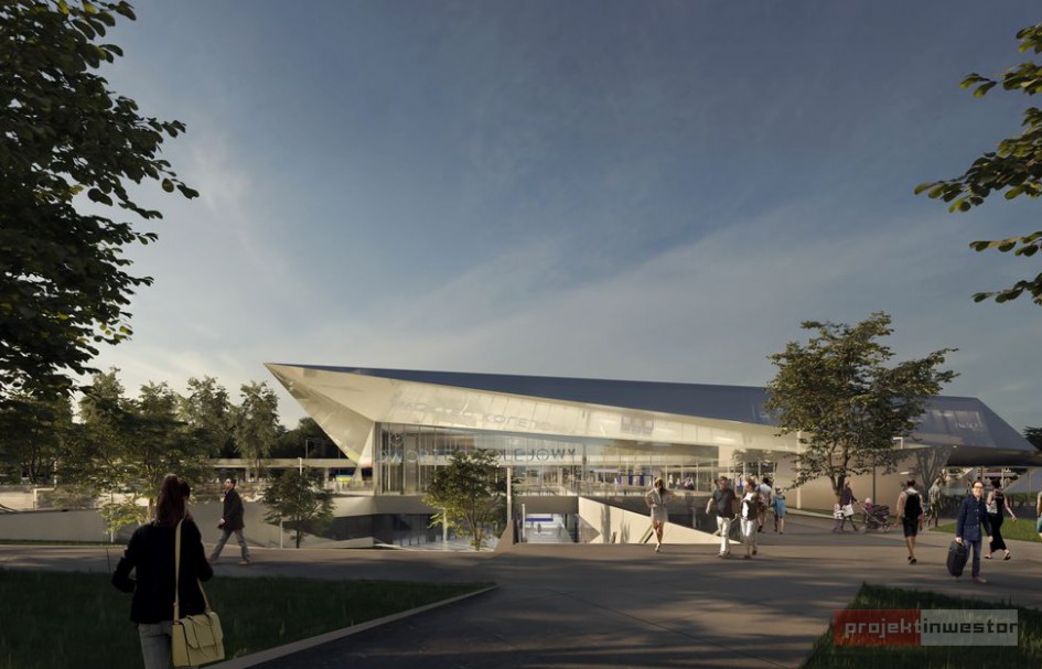 Budynek dworca zostanie wzniesiony na planie trapezu, a oryginalności ma dodawać mu przeszklona fasada. Na elewacji frontowej znajdą się wielkoformatowy zegar, a tuż pod nim – zgodnie z zaleceniami konserwatora zabytków – pochodzący z dotychczasowego dworca neon "Dworzec Kolejowy". W najwyższym punkcie dachu budynek osiągnie około 12 metrów wysokości. Jego długość od strony peronów wyniesie 73 metry, natomiast szerokość pod dachem - około 29 metrów.
