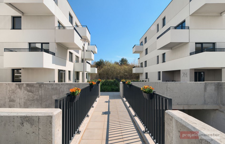 Każdy lokal posiada balkon lub ogródek, a budynki wyposażono w windy obsługujące również poziom garażu podziemnego. Uzupełnieniem są miejsca postojowe – zarówno w hali, jak i na terenie zewnętrznym. W projekcie przewidziano także instalacje fotowoltaiczne, które zasilają części wspólne, ograniczając koszty eksploatacyjne.