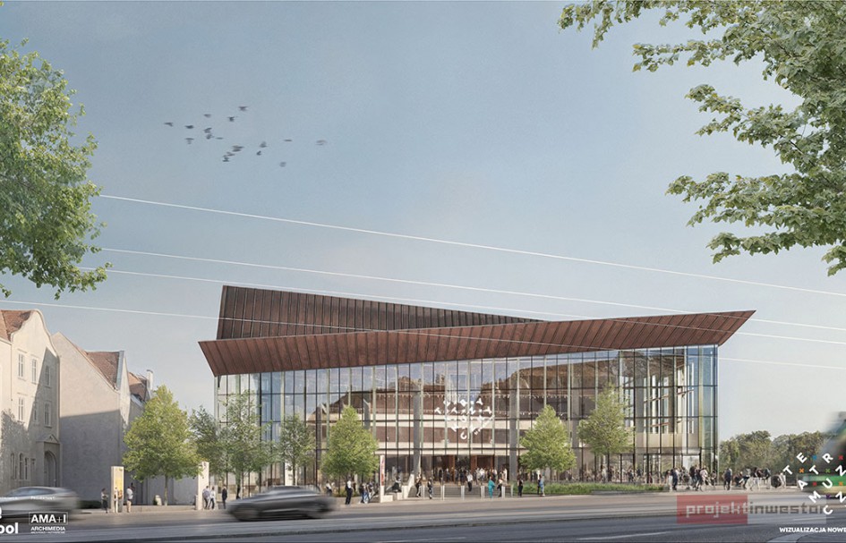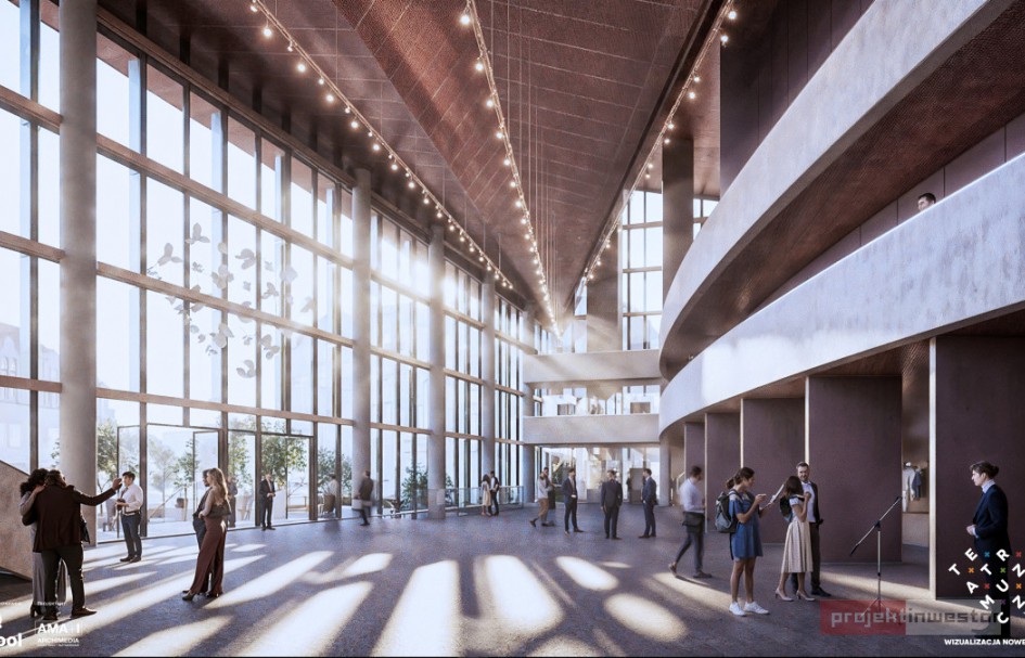 Teatr Muzyczny w Poznaniu opublikował nowe wizualizacje swojej przyszłej siedziby powstającej przy ul. Św. Marcin w Poznań. Projekt został zaktualizowany i dopracowany m.in. w oparciu o szczegółowe badania wibroakustyczne oraz analizy wpływu otoczenia komunikacyjnego na funkcjonowanie obiektu. Budowa, realizowana przez Dekpol Budownictwo, przebiega zgodnie z harmonogramem – na placu budowy wykonano już ścianki szczelinowe, a obecnie trwa wybieranie gruntu pod podziemną część budynku.