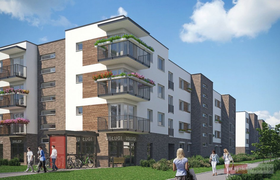 W ramach pierwszego etapu inwestycji powstanie pięć budynków z lokalami o powierzchni od 30 do 65 mkw. oraz sześć lokali usługowych, w których znajdzie się m.in. przychodnia lekarska. Dostępne będą mieszkania jedno-, dwu- oraz trzypokojowe wykończone w standardzie "pod klucz". Prawie wszystkie będą posiadały balkon, a dwadzieścia z nich zostanie dostosowanych do potrzeb osób z niepełnosprawnością ruchową.