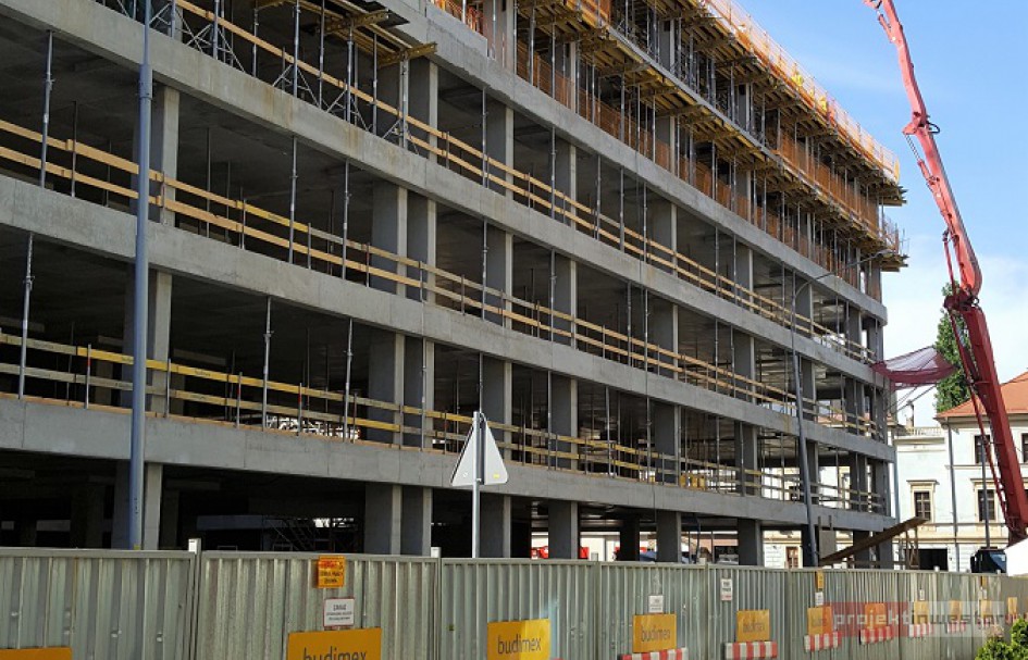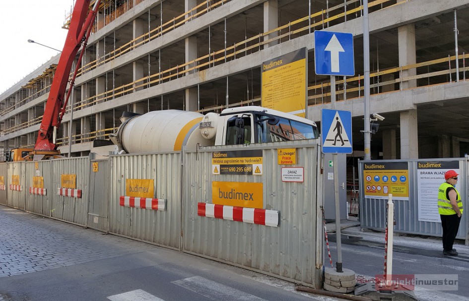 - Za nami już wykopy w wyniku których wywieźliśmy 21.000 m3 ziemi, ukończyliśmy kondygnację podziemną z palisadą i grodzicami. W najbliższych kilku tygodniach zakończymy również żelbetową konstrukcję naziemną w którą wbudowaliśmy do tej pory 15.000 m3 betonu i 1.700 ton stali. To ważny punkt milowy projektu ponieważ stawialiśmy budynek ściana w ścianę z teatrem Capitol. Obecnie koncentrujemy się na elewacji której przykładowy fragment został już zamontowany od ul. Bogusławskiego oraz na instalacjach. – mówi Witold Stańczak, Kierownik Projektu, LC Corp SA.