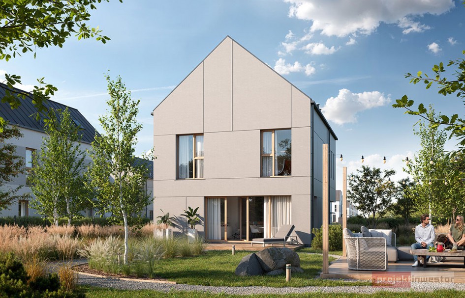Istotnym elementem projektu jest integracja części mieszkalnej z przestrzenią zewnętrzną. Każdy dom posiada prywatny ogród, którego powierzchnia – w zależności od segmentu – sięga nawet kilkuset metrów kwadratowych. Rozwiązanie to stanowi integralną część koncepcji funkcjonalnej, umożliwiając rozszerzenie strefy dziennej o przestrzeń rekreacyjną.