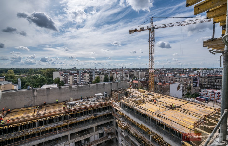 Inwestycja Angel River na Przedmieściu Oławskim zaczyna górować nad okolicą. Właśnie rozpoczęła się realizacja 11 piętra. Równolegle trwają intensywne roboty murarskie związane z wznoszeniem ścian i wykonywanie przyłączy do budynków.