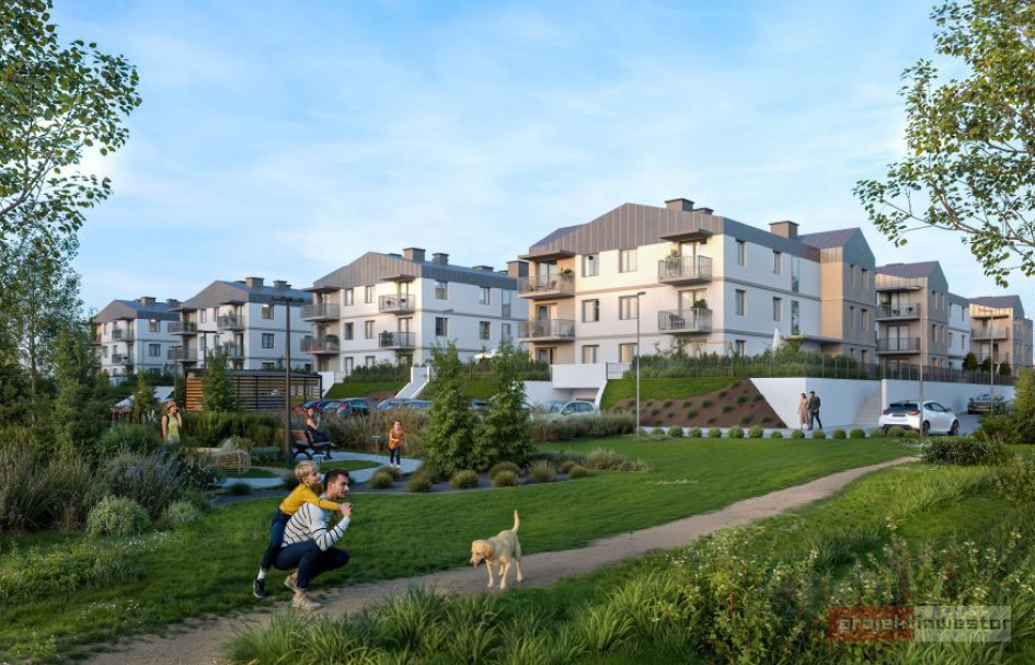 Założenie urbanistyczne opiera się na niskiej intensywności zabudowy oraz dużym udziale terenów zielonych. Między budynkami zaplanowano przestrzenie rekreacyjne, ciągi piesze i strefy wypoczynku, a także plac zabaw. Projekt zakłada wysoki udział powierzchni biologicznie czynnej oraz uporządkowaną strukturę osiedla, z czytelnym podziałem na część mieszkaniową i wspólną.