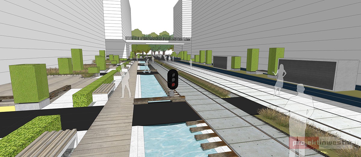 Park linearny przy kompleksie biurowym Pin Park we Wrocławiu