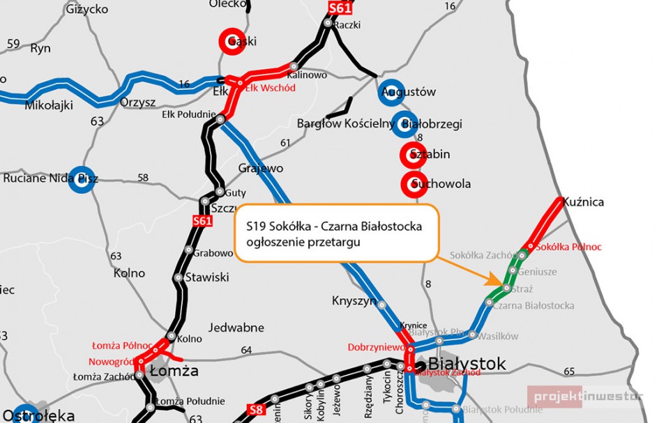 Postępowanie dotyczy fragmentu o długości 24 kilometrów. Etap Sokółka-Czarna Białostocka będzie się łączył z odcinkiem S19 od granicy z Białorusią: Kuźnica-Sokółka.