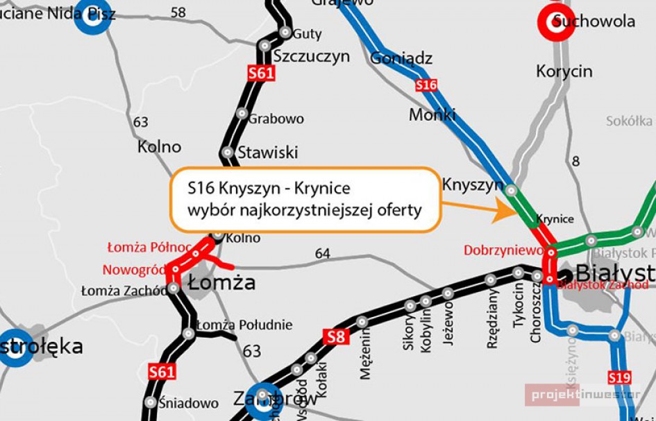 W białostockim oddziale Generalnej Dyrekcji Dróg Krajowych i Autostrad otwarto koperty z ofertami, które napłynęły w ramach postępowania przetargowego na odcinek Knyszyn-Krynice. Blisko realizacji kontraktu jest konsorcjum firm w składzie Mirbud i Kobylarnia, które zaproponowało za wywiązanie się zadania kwotę 314,7 mln złotych. To najtańsza propozycja.