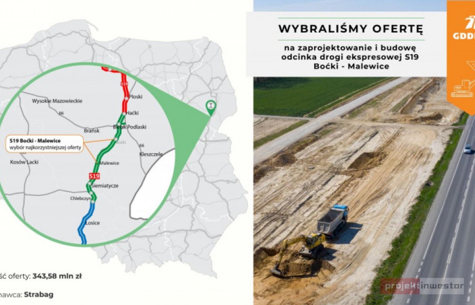 Oferta generalnego wykonawcy okazała się najtańszą spośród siedmiu propozycji nadesłanych w przetargu na projekt i budowę kolejnego podlaskiego odcinka S19 Via Carpatia. Postępowanie dotyczy 16-kilometrowego fragmentu Boćki-Malewice.