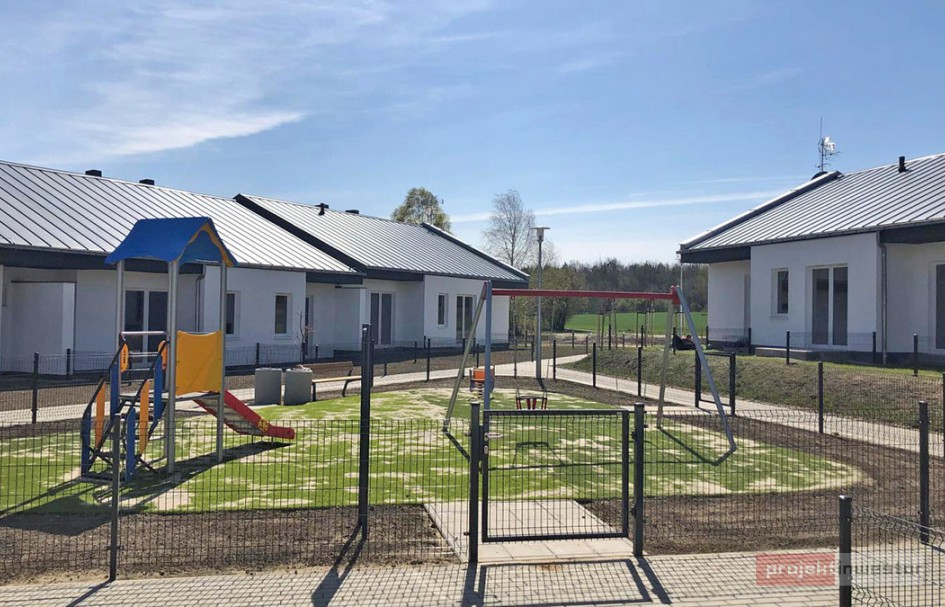 Na razie zrealizowano pierwszy etap inwestycji, na który składa się sześć parterowych budynków. W środku powstały mieszkania jedno- oraz dwupokojowe. W standardzie są w pełni przygotowana łazienka z kabiną prysznicową i umywalką oraz kuchnia wyposażona w kuchenkę i zlewozmywak. Wokół budynków stworzono place zabaw, mini ogródki, chodniki oraz oświetlenie.