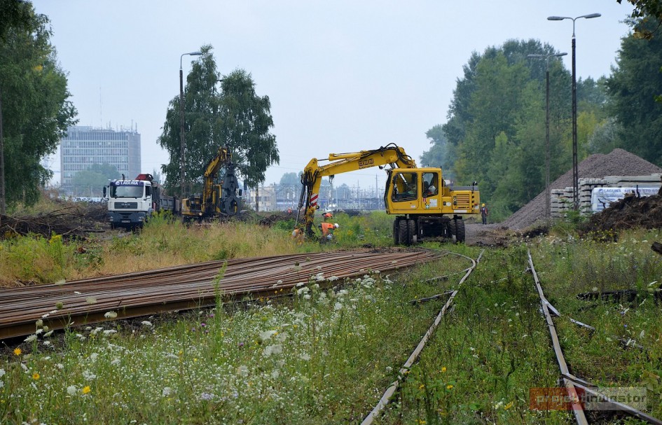 Na terenie stacji Warszawa Główna wykonawca przygotowuje teren. Pracuje ciężki sprzęt, demontowane są tory. Równocześnie gromadzony jest materiał niezbędny do przebudowy stacji.
