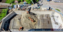 Trwają zaawansowane roboty przy zbrojeniu i betonowaniu płyty fundamentowej, których zakończenie przewidziane jest na początek czerwca. W maju na budowie pojawi się pierwszy żuraw.