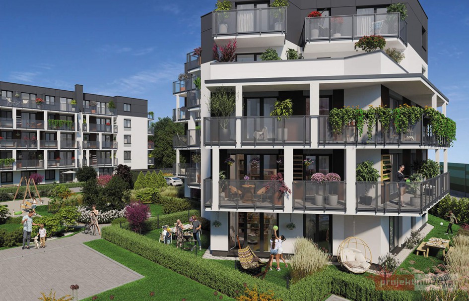 Trzybryłowy budynek będzie posiadać mieszkania o metrażach od 26 do 89 mkw. Zaplanowano w nim lokale w układach od jedno- do pięciopokojowych. Każdy z nich będzie posiadać przydomowy ogródek lub balkon.