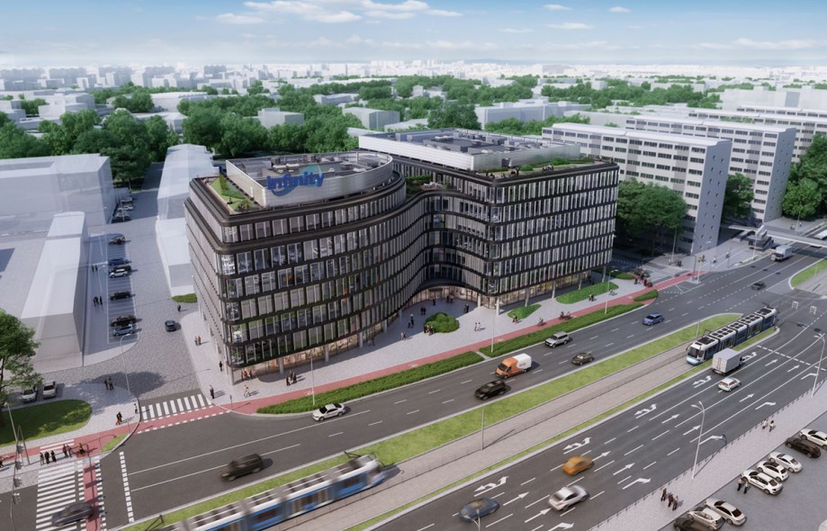 Biurowiec Infinity będzie miał siedem kondygnacji naziemnych oraz jedną podziemną. Łącznie pomieści 18 727 mkw. powierzchni biurowej, a całkowita powierzchnia najmu to 21 847 mkw. W garażu podziemnym przewidziano 311 miejsc parkingowych. Dodatkowo z myślą o rowerzystach zapewnionych zostanie 120 stanowisk dla rowerów w zamkniętej strefie, szatnie oraz prysznice.