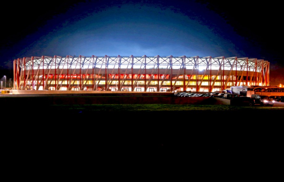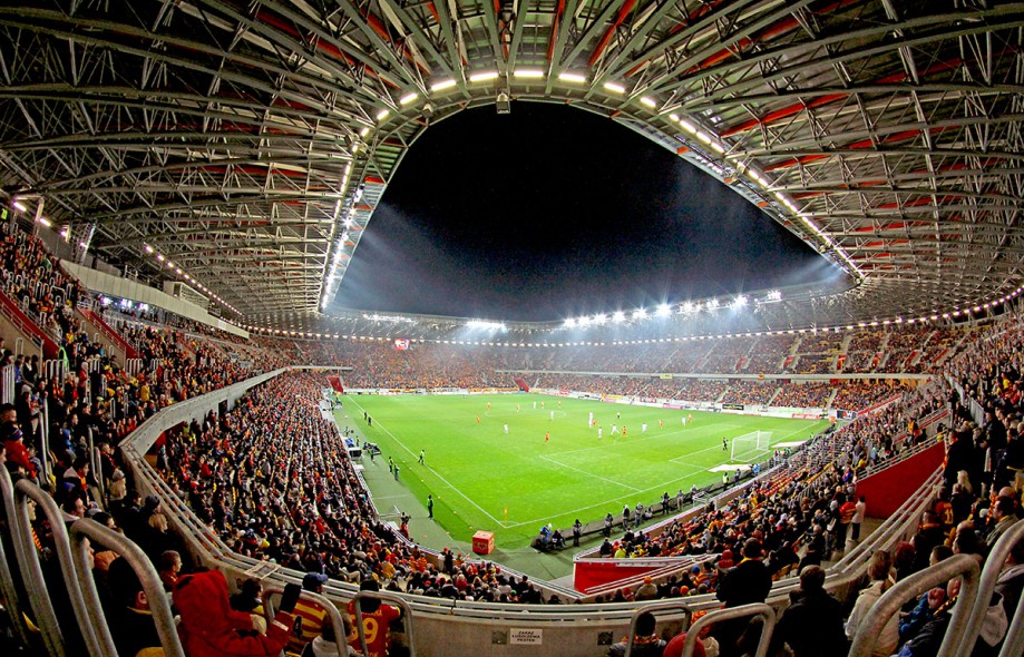 Stadion, zlokalizowany przy ul. Słonecznej 1 w Białymstoku, powstał w miejscu starego, wyburzonego stadionu, którego inauguracja odbyła się na początku lat 70-tych ub. r. Projekt stadionu to lekka ażurowa konstrukcja. Widownia posiada dwie strefy wysokościowe, a miejsca są podzielone na 72 sektory. Łącznie stadion może pomieścić 22 tys. widzów.