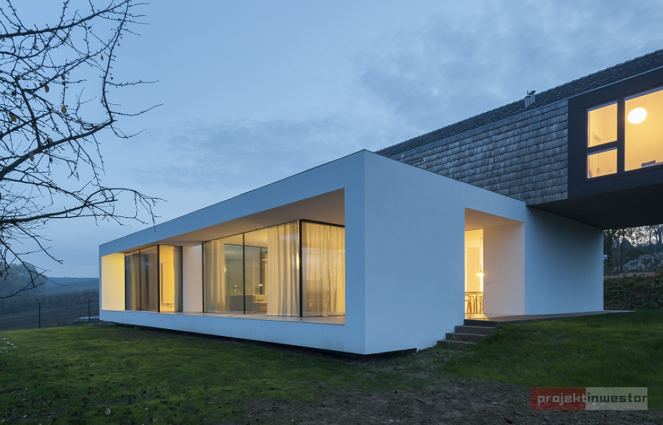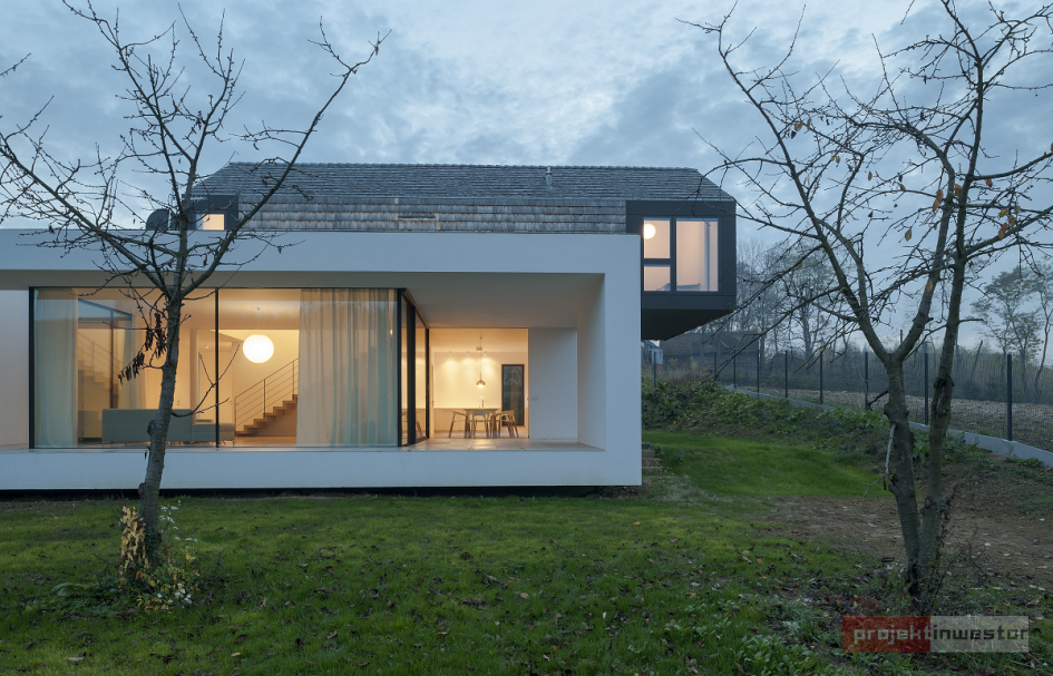 Projekt powstał w 2012 roku a po 3 latach dom został oddany do użytku. Budynek wraz z działką mieści się na stoku, co jak się okazało, stało się atutem a nie przeszkodą. Dzięki ukształtowaniu terenu architekci zaprojektowali budynek, który tylko częściowo odsłonięty jest od strony ulicy.