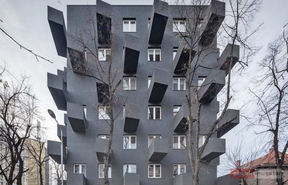 Unikato definiują dwa elementy: kolor i balkony. Niskim kosztem udało osiągnął się niesamowity efekt. Jak zawsze punktem wyjścia jest nieszablonowy pomysł, co gwarantuje pracownia Roberta Koniecznego.