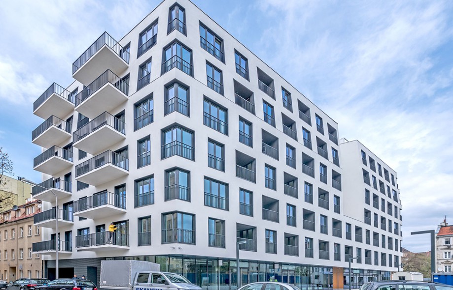 Inwestycja Księcia Witolda oferuje 70 mieszkań rozmieszczonych na 6 piętrach, podziemne miejsca parkingowe i lokale usługowe na parterze.