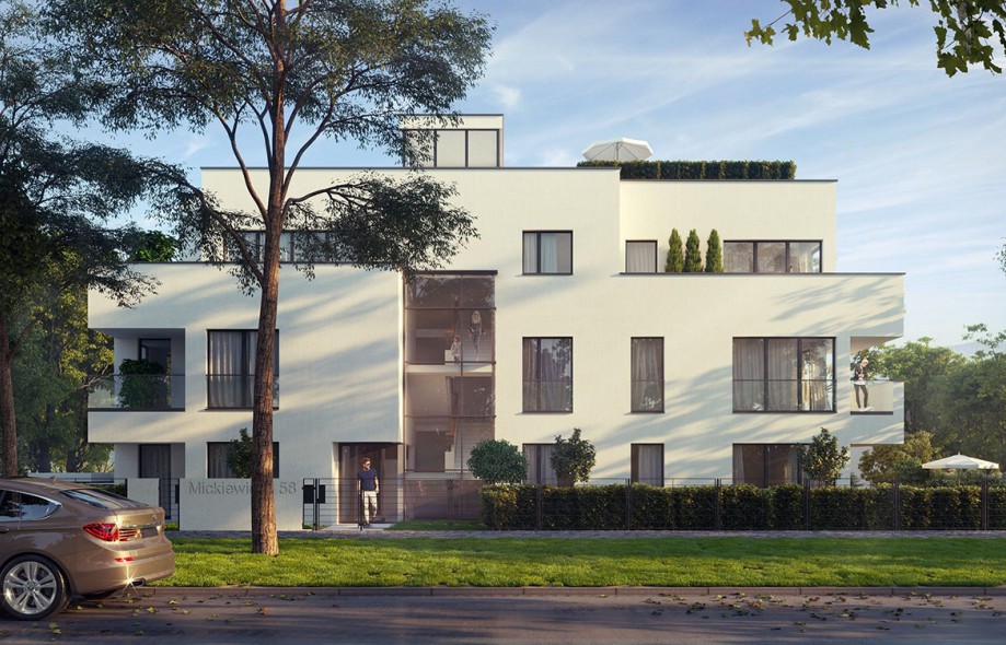 Willa przy ul. Mickiewicza 58 to trzykondygnacyjny budynek, w którym powstało tylko sześć apartamentów od 100 do 140 mkw., z ogródkami na parterze, balkonami i tarasami na pierwszym i drugim piętrze. Do każdego apartamentu przydzielone są dwa miejsca parkingowe w garażu podziemnym.