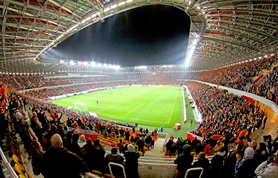 Stadion, zlokalizowany przy ul. Słonecznej 1 w Białymstoku, powstał w miejscu starego, wyburzonego stadionu, którego inauguracja odbyła się na początku lat 70-tych ub. r. Projekt stadionu to lekka ażurowa konstrukcja. Widownia posiada dwie strefy wysokościowe, a miejsca są podzielone na 72 sektory. Łącznie stadion może pomieścić 22 tys. widzów.